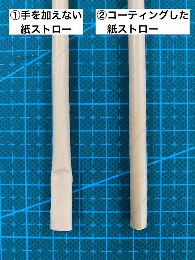 ■コーティングするだけで紙ストローの“耐水性・耐久性”が向上