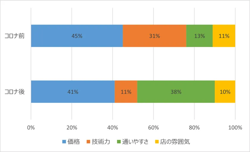 まずは、コロナ前後での美容室を選ぶ基準の変化から見ていきましょう。