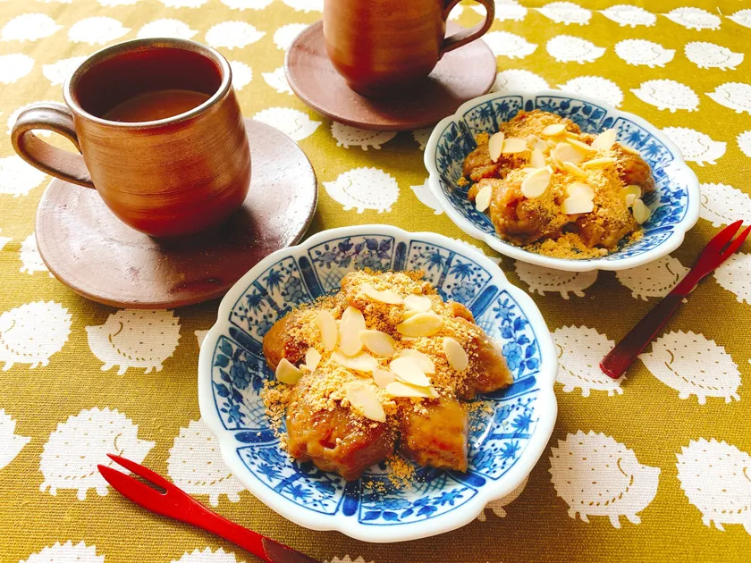 4. 3の水気をきって器に盛り、きな粉と砂糖を混ぜ合わせてまぶし、