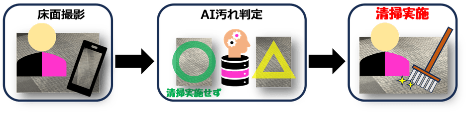 ②AI画像診断型CBMシステムの開発:スマートフォンで特定の床面を撮影すると、AIが熟練清掃員の「匠の目」と同等の精度で美観状態を判定するAI並びにシステムの開発