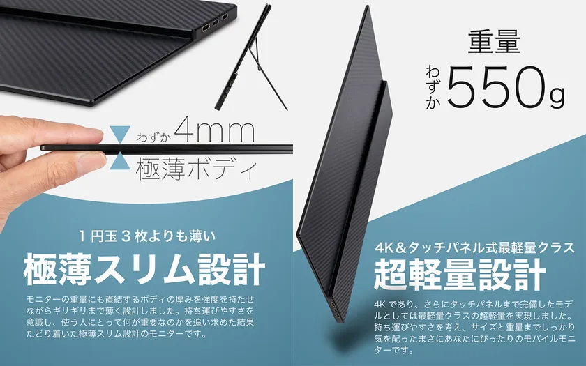 4K&タッチパネル式では最軽量クラスの超軽量設計です。