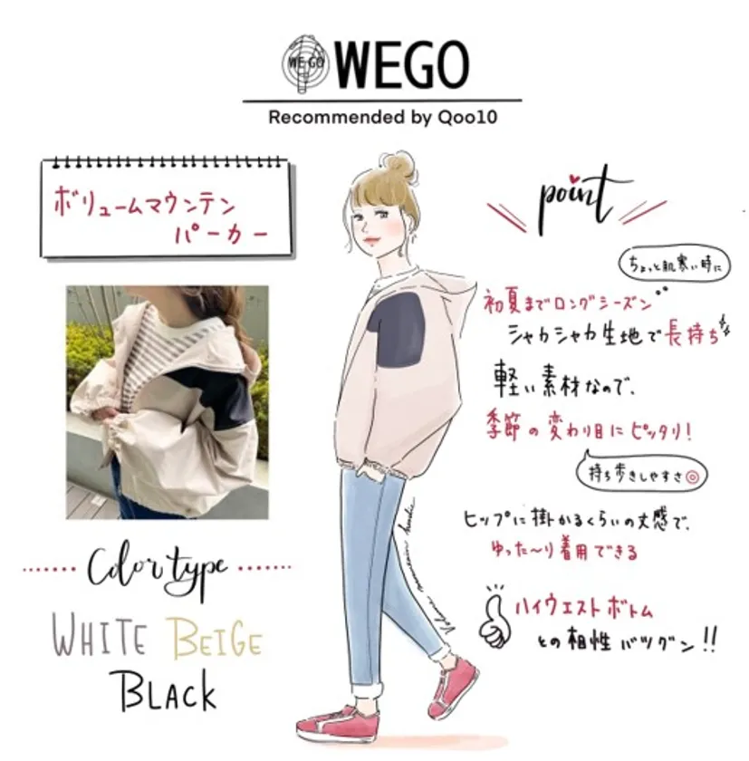 人気のコーナー、Qoo10 コーデ『今日のりおポチ』では、内田理央さんのこの春のオススメファッションアイテムとしてWEGO(ウィゴー)のボリュームマウンテンパーカーが紹介されました。