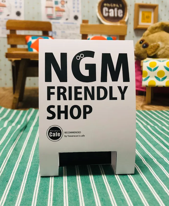 やわらかん's cafeは、ぬいぐるみ連れの方歓迎、撮影OKな「NGM(ぬいぐるみ)フレンドリー店」のサービス加盟店を全国で募集開始し、東京都足立区梅島周辺のナナシノ商店街がパートナーとして加盟いたしました。店頭のNGM(ぬいぐるみ)フレンドリー店のポップが目印です。