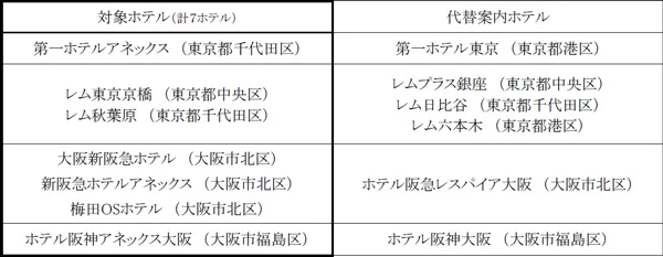 なお、休業対象のホテルにご予約をいただいているお客様には、近隣の直営ホテルを代替としてご案内します。