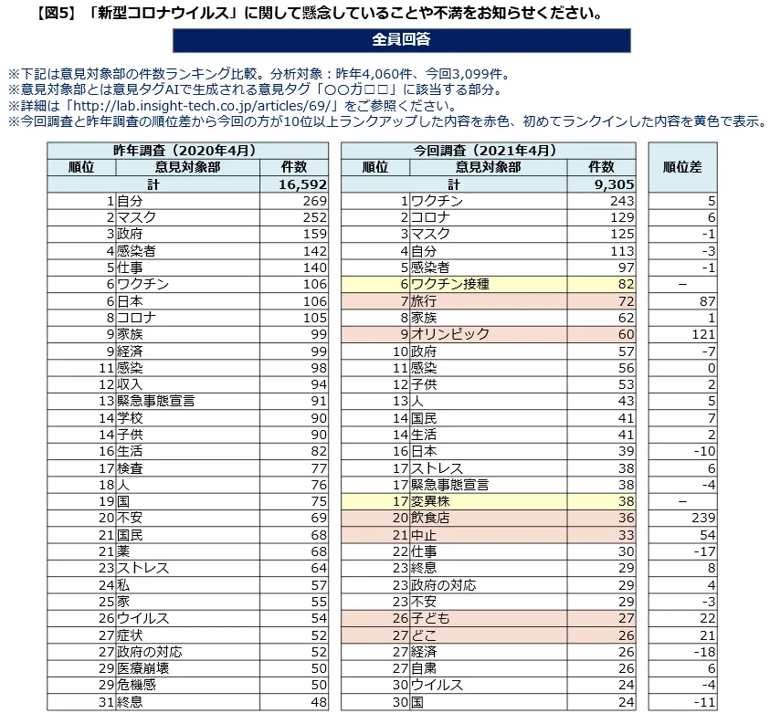 4:新たな不満として「ワクチン接種」が進んでいない、「変異株」の拡大が怖いが見られる。(図5)