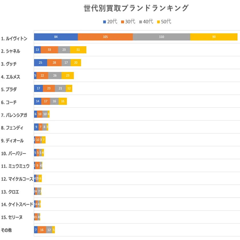 “世代別買取ブランドランキング” 20~50代でお買取の多いブランドを調査