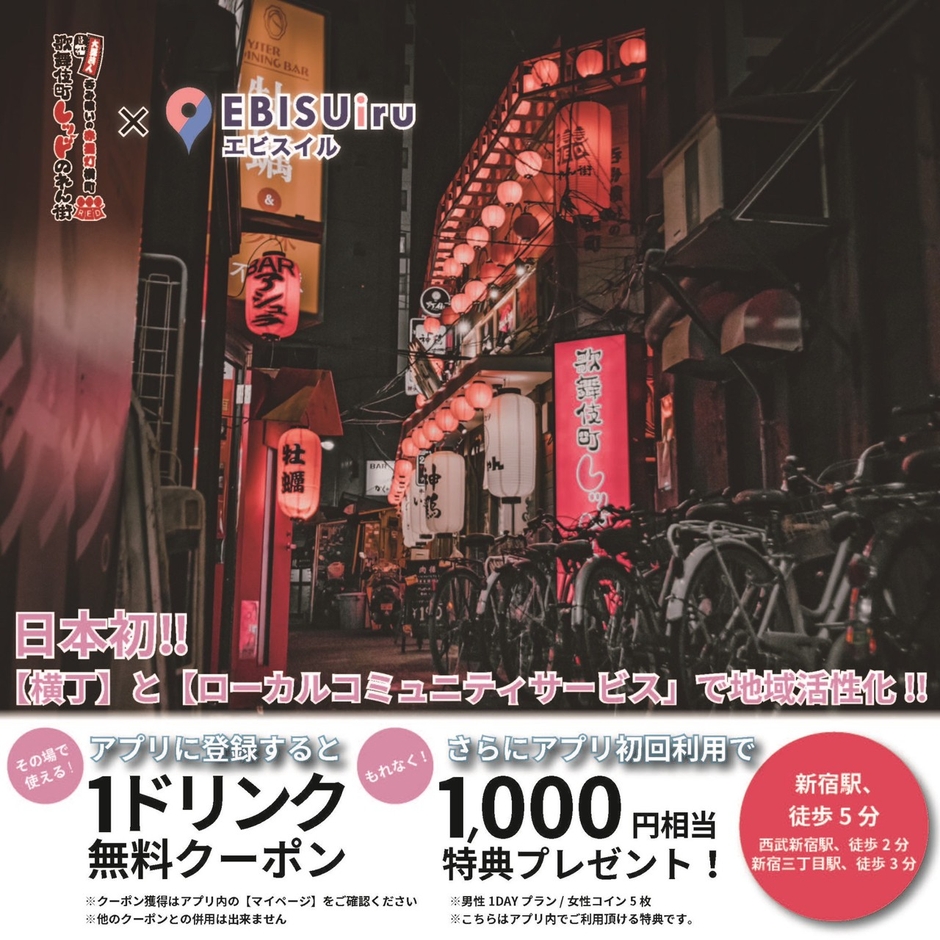 日本初‼️【歌舞伎町レッドのれん街】と【ローカルコミュニティサービス】で地域活性化!ご登録でドリンク無料クーポンがもらえる!