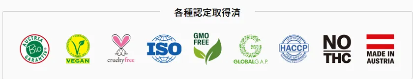 種のひと粒から農場での栽培、工場での抽出、精製そして充填に至るまで、全ての工程や原材料に数多くの認定を取得し、安全・安心への説明責任を果たす為の情報を開示すること。日本市場の為に生産ラインの見直しから始まったこの1本に、私たちの地球環境に対する哲学と、商品開発への誠意の全てが込められています。