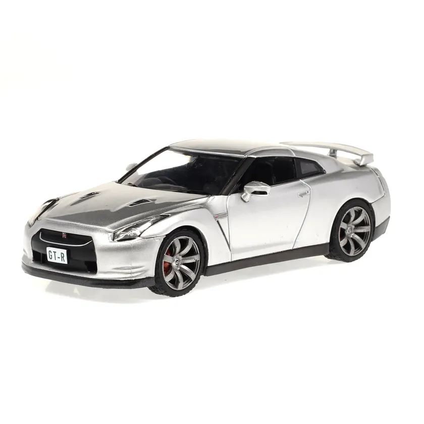 国産スポーツカーの代名詞GT-R。だれでも、どこでも、いつでもハイパフォーマンスを楽しめる「マルチパフォーマンススーパーカー」として開発されたR35は、モデルカーとしても見るものを楽しませます。カラーはシルバー、ホワイト。