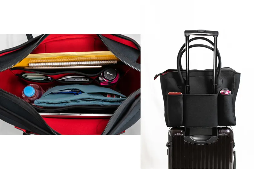 A4ファイルなども余裕で入る大容量でスーツケースに固定も可能