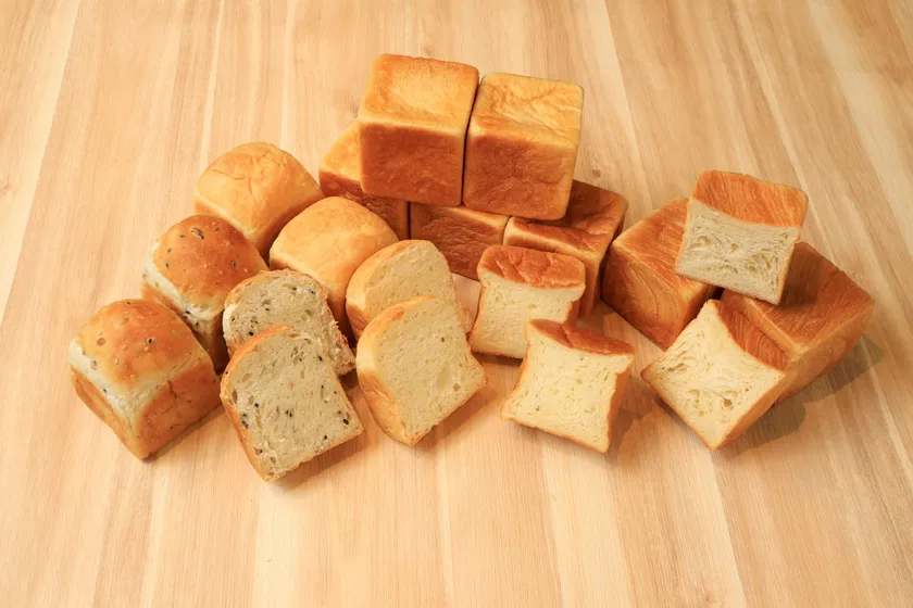 飽きがこないよう、「銀座の食パン~香~」以外に、健康志向の雑穀食パン、ECで大人気のクロワッサン食パン、毎月何が届くかお楽しみのサプライズone食パンすべての食パン俺のベーカリーブーランジェがひとつずつ丁寧に食べきりサイズの7cm角で焼き上げています。