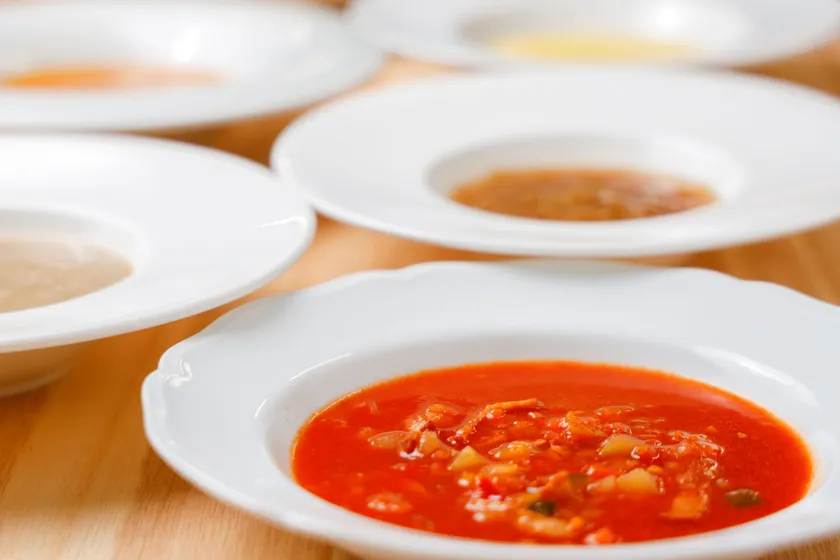 国産とうもろこしを使ったプレミアムコーンスープ、たまねぎを30%まで炒めたオニオンスープなど手が込んだスープや具沢山ミネストローネや具沢山クラムチャウダーは複数種類の野菜と多めの具材にしました。