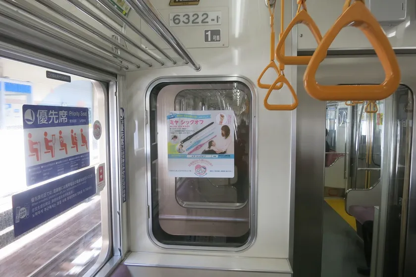 掲載場所:優先座席横の連結部ガラス窓
