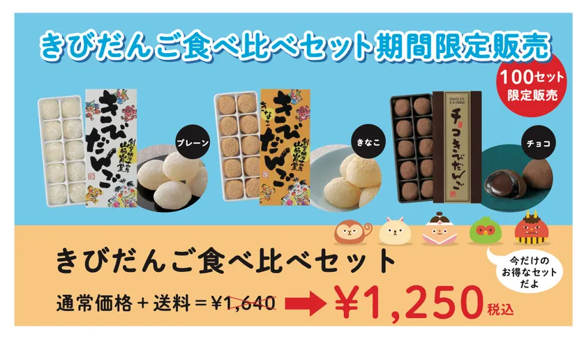 岡山旅行気分!創業140年の老舗きびだんごメーカーが 10年間で累計158万個を販売した人気きびだんご食べ比べセットを 送料無料で限定100セット販売開始!