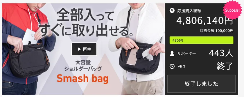 【Smash bag(スマッシュバッグ)】クラウドファンディング(CAMPFIRE)