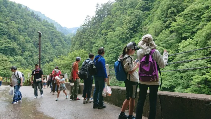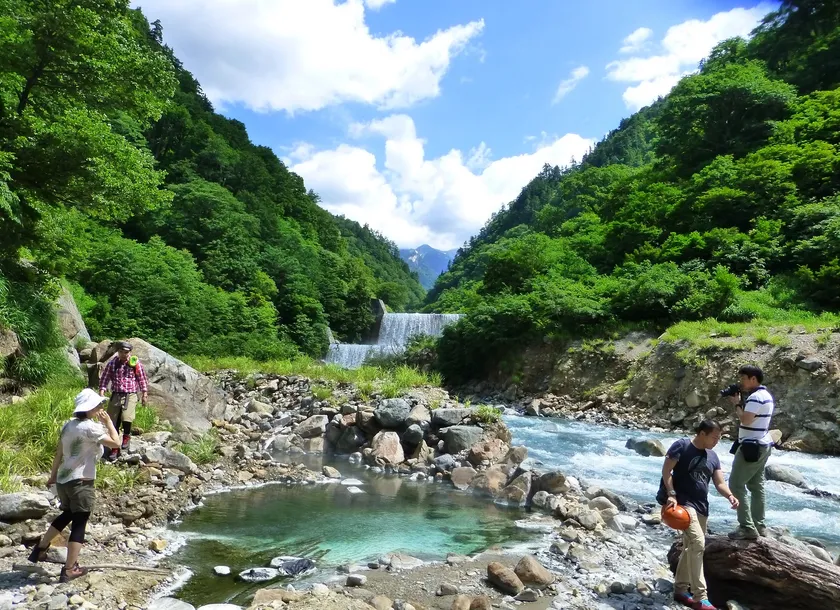 宇奈月駅集合(9時30分)→宇奈月駅発(9時42分)→欅平駅着(11時00分)→祖母谷温泉源泉散策~昼食→祖母谷温泉出発(14時00分頃)→河原展望台・足湯→欅平駅集合(15時50分)→欅平駅発(16時01分)→宇奈月駅着(17時16分)→解散