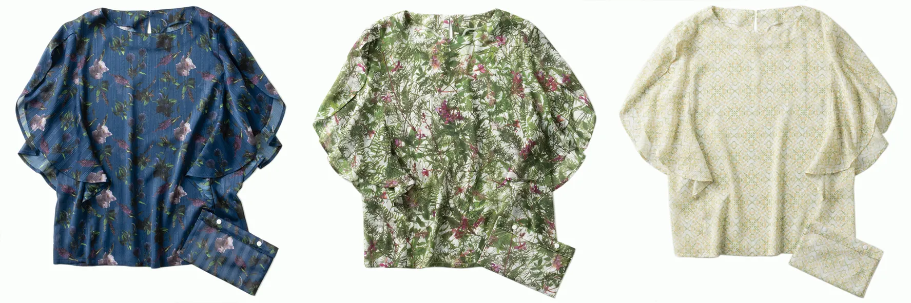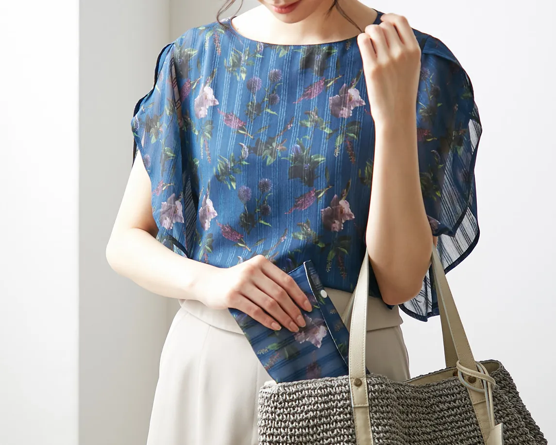色彩が美しいフラワー柄は、世界で活躍するフワラーアートユニット”プランティカ”によるデザインで、身にまとうことで華やかな装いを演出してくれます。また、大人の女性が美しく着こなせるように、シルエットにもこだわりました。付属のマスクケースも、ブラウスと同じフラワー柄です。