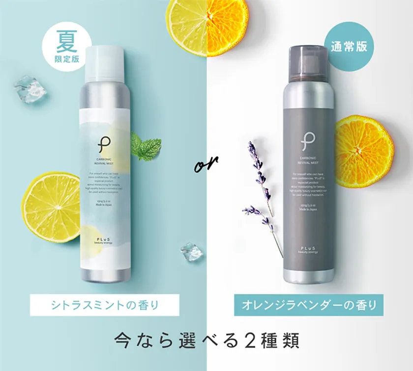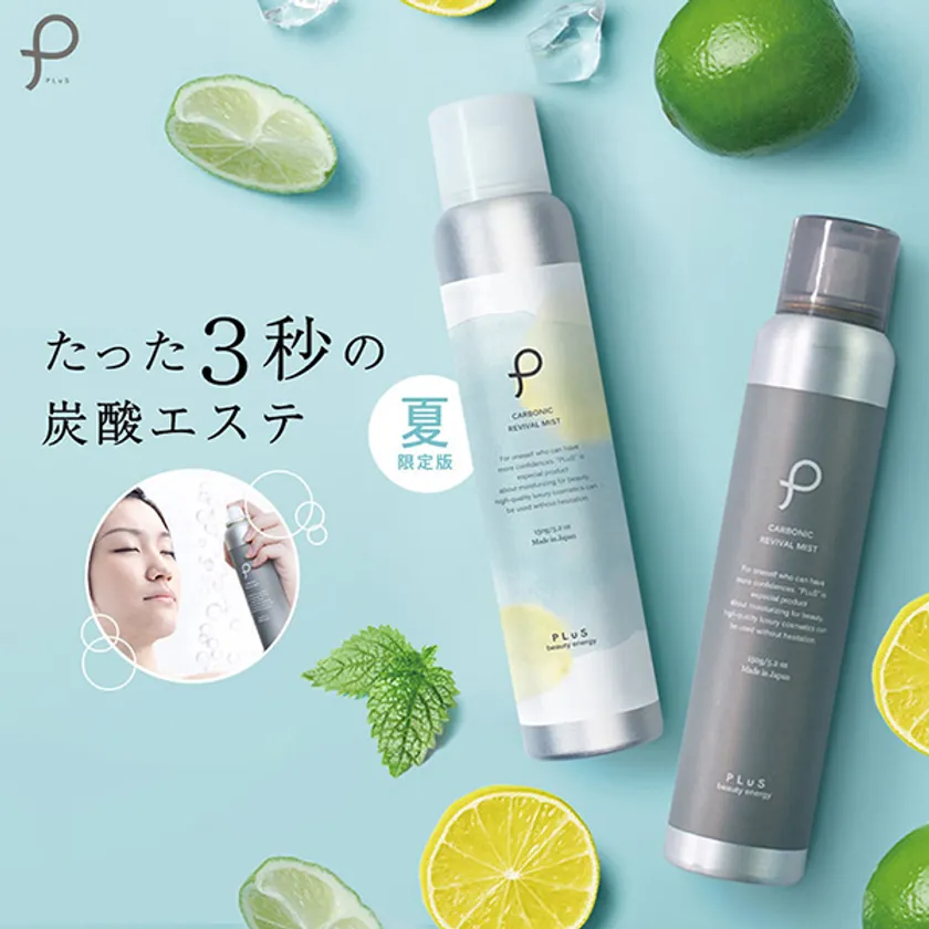 楽天ベストコスメや楽天ランキング1位を何度も受賞している、スキンケアブランド『プリュ(PLuS beauty energy)』のラインナップの1つである「カーボニック リバイバル ミスト」は、ヨーロッパ炭酸泉の10倍以上もの炭酸を抽入した高濃度炭酸100%ミストです。さらに美容成分19種類を配合し潤いのある透明肌へと導きます。当社の中でも大変多くのお客様からご支持いただいているロングセラー商品です。