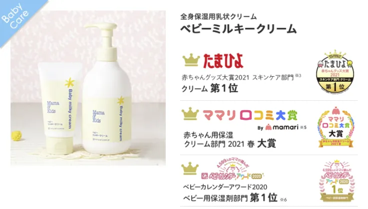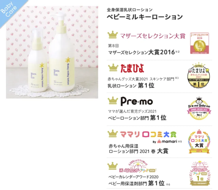 ※2 ベビーミルキーローションが第8回マザーズセレクション大賞2016を受賞