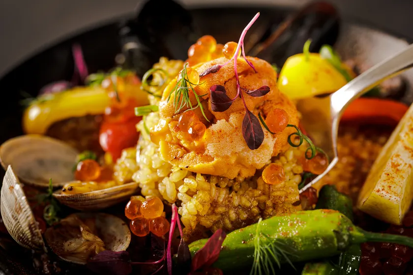 ウニとイクラのパエリア