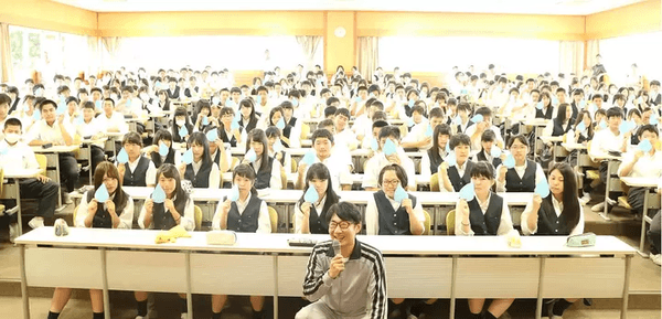 涙活は、ストレス解消を図る方法として編み出されましたが、それを教育にも応用したのが、“涙”の授業。人は涙を流すとき、おでこの先にある前頭前野、通称、共感脳を震わせます。人は何かに感動した時や共感した時に、共感脳が震え、涙活は、この共感脳を震わせる活動でもあります。その仕組みを利用し、共感力や自己肯定感を高めるワークショップを開発し、小中学校、高校で、実践しています。