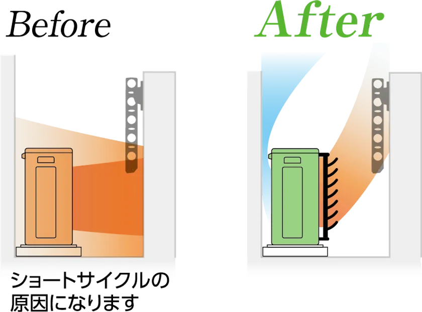 ○室外機に取り付けるだけで排気方向の調節ができる!!