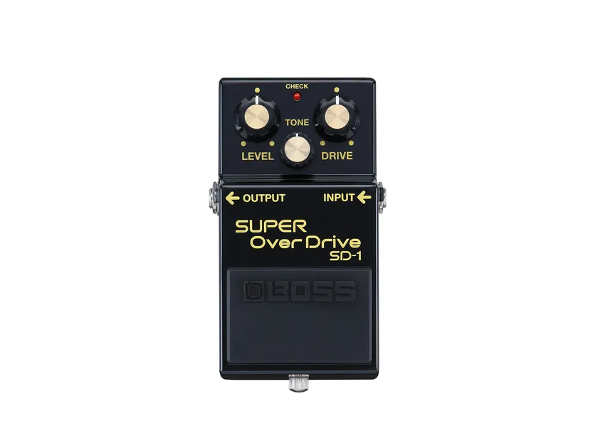 「SD-1」は、「Over Drive」ペダルのルーツともいえる「OD-1」(1976年発売)の後継機として1981年に登場しました。「OD-1」の甘くまろやかなサウンドとレスポンスを受け継ぎつつ、新たにトーン・コントロールを追加し、より多彩な音作りを可能にしたモデルです。また、歪ませたアンプと組み合わせることで、サウンドにハリ、ツヤを出す、いわゆる「ブースター」としても高く評価されています。発売以来40年もの長きにわたり、多くのギタリストに愛されてきた「SD-1」は、まさに「Over Drive」と呼ぶにふさわしいモデルです。