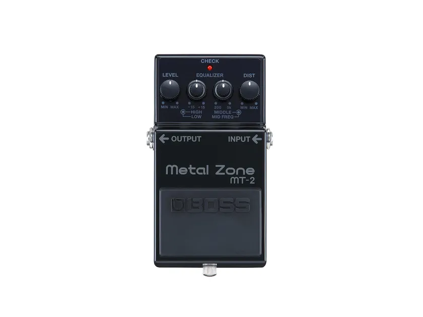 ヘヴィメタルなどの新しい音楽ジャンルの出現もあり、1980年代からギターの歪みサウンドには、より重厚さが求められるようになりました。1991年に登場した「MT-2」は、ボス独自の「デュアル・ゲイン回路」を搭載し、中域に強い個性を持ちながらも、タイトで鋭い歪みサウンドを特徴とするモデルです。また、緻密な音作りを可能にする3バンド・イコライザーを搭載。ジャンルを問わず存在感のある歪みサウンドを作り出すことができます。「MT-2」のきめ細かな美しい歪みサウンドは、多くのギタリストに受け入れられ、発売後まもなく世界的なベストセラーとなりました。現在までの累計出荷台数は100万台を突破、まさにハイゲイン・エフェクターの代名詞ともいうべきモデルです。
