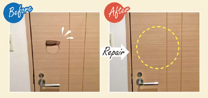 リフォームや買い替えなどの大掛かりな工事をすることなく、傷んだ扉や床などのキズを修繕・修復することができます。当社のリペアサービスは大理石などの付加価値の高い建材にも対応できる、低コストかつ環境にも優しい技術です。