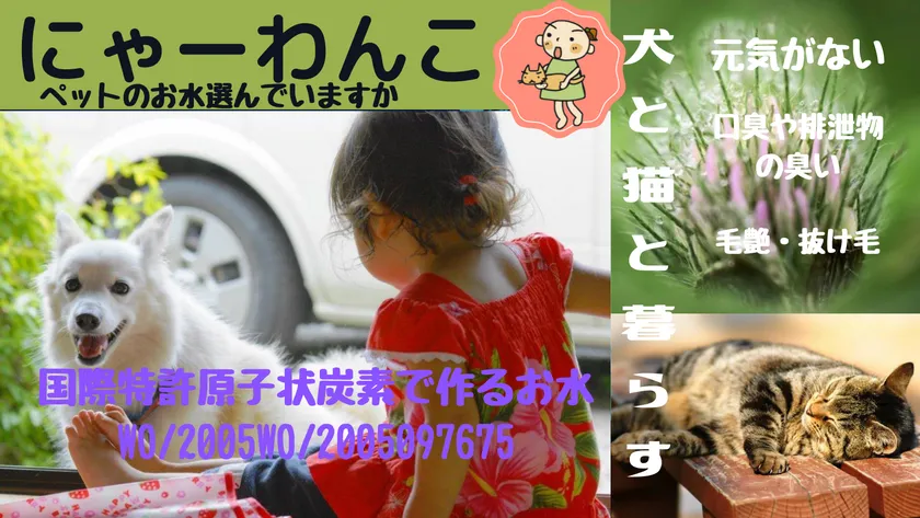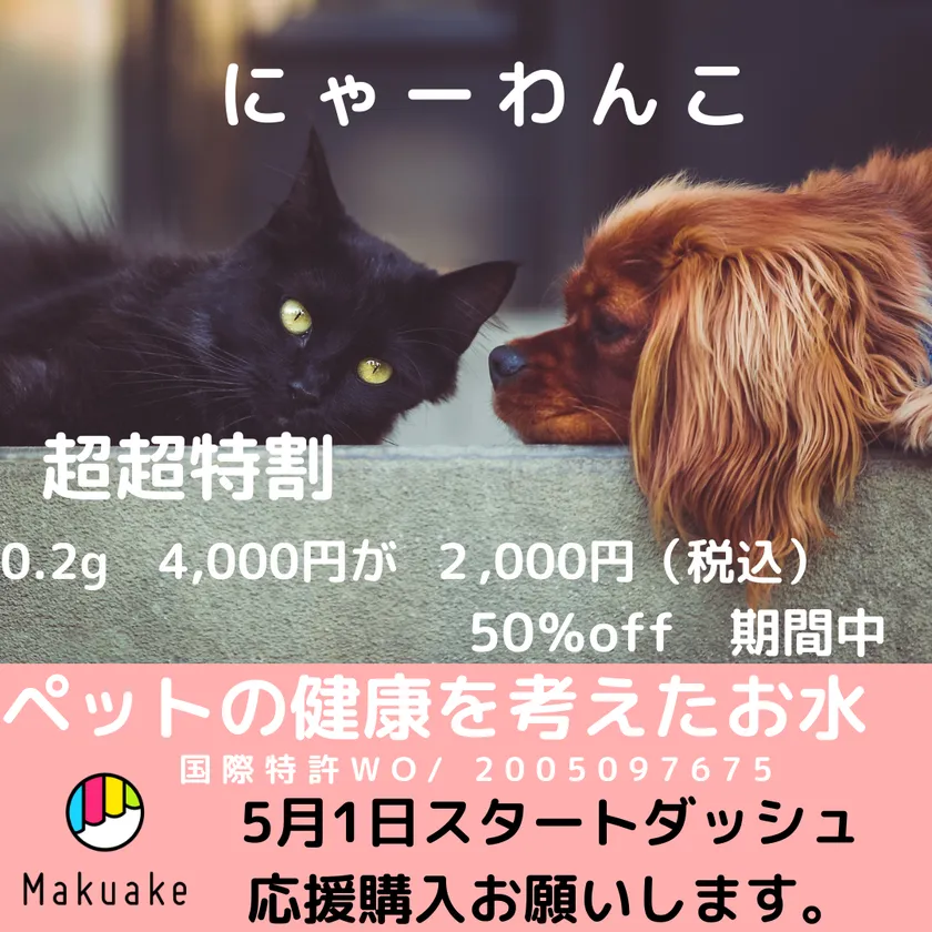 ペットの健康を考えたお水「にゃーわんこ:原子状炭素」を 50%OFFで購入できるクラウドファンディングが開始