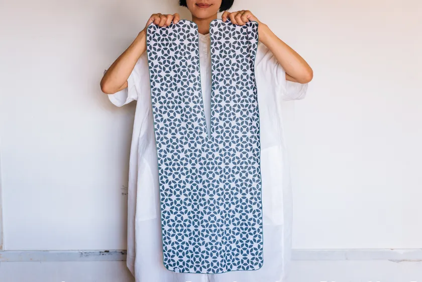 &ethicalは近年注目される「エシカル(地球環境や人、社会、地域への配慮)」な社会を目指す携帯食事用エプロンブランドとして、長野県上田市でうまれました。ファーストプロダクトの『eptenu(えぷてぬ)』は、食事中のうっかり汚れから洋服をまもる大人のための食事用エプロンです。オシャレを楽しみながら食事も思いっきり楽しみたい方にぜひ使ってもらいたい!と思い企画・開発しました。eptenuに散りばめられた「組六紋」は、上田市ゆかりの真田氏家紋・六文銭をモチーフにしたデザイナーの野老朝雄さんによるものです。100年以上の歴史がある捺染(なっせん)という技法と、1枚の生地に両面から別色を染める特殊技術によるリバーシブルデザインは、その日の気分で好きな色を選択でき、折り畳めば手ぬぐいのように軽量で携帯性に優れ、手ふきとしても使用できます。使い捨ての紙ナプキンではなく、繰り返し洗って使える布エプロンを。毎日のテレワークなどで、仕事とプライベートの切り替えが難しいこの時世の中、家族や友人、同僚と過ごす日々の食事シーンを彩ります。