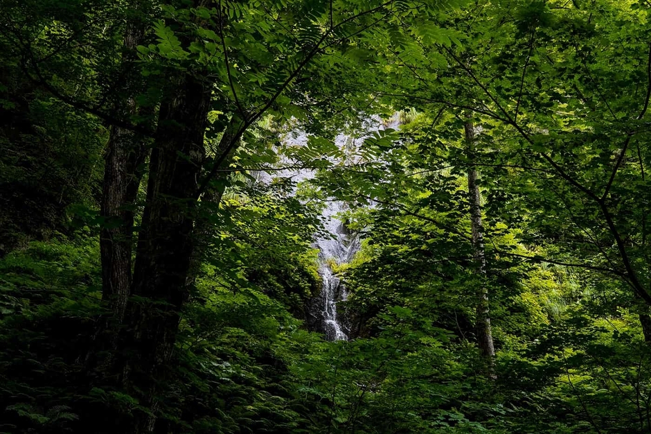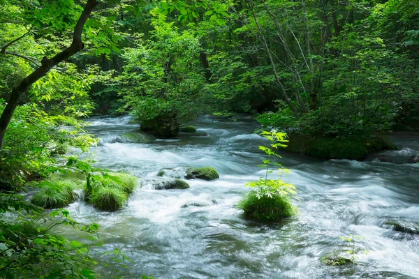 さらに、森の木々は高さ約30メートル以上になるものも多く、たとえ雨が降っても、真夏の強い日が差しても、木々に芽吹かせた葉が傘となり参加者を守ってくれます。天候や季節によって様々な姿を見せてくれるのも、奥入瀬渓流の魅力です。4月から5月にかけては淡い萌黄色に輝く新緑の森を、6月から9月には渓流の水しぶきが一層映える青々と涼しげな深緑の森を、10月中旬から11月初旬にはカツラの甘い香りに包まれた黄金色の世界を楽しめます。