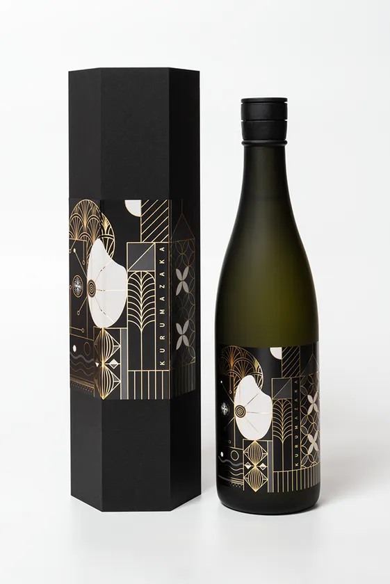 外観は従来の商品から一新し、リニューアルした純米大吟醸酒のラベルに黒フロスト瓶を使用。また六角形の化粧箱で贈り物にもお使いいただけます。