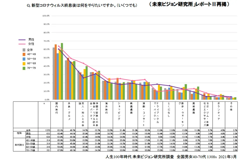 人生100年時代未来ビジョン研究所(代表:阪本節郎)は、2020年6月11日~6月13日、及び、2021年3月19日~3月26日に、40~70代の“中高年大人世代”を対象として「コロナ下での行動」に関するインターネット調査を実施し、2021年5月17日に第7弾の調査結果を発表しました。