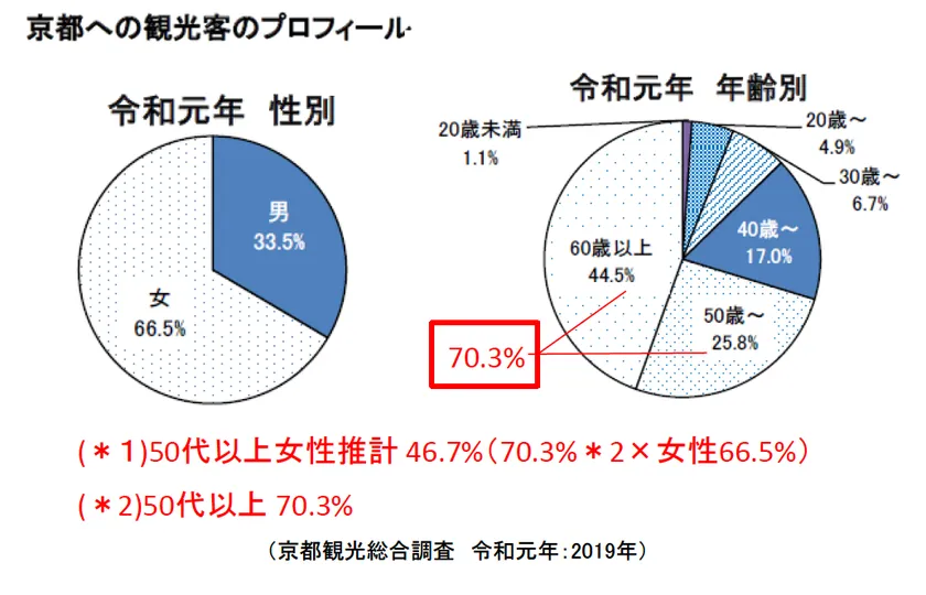 ■「京都観光」(コロナ以前)の観光客/50代以上の女性だけで、訪日外国人(インバウンド)の2.6倍。