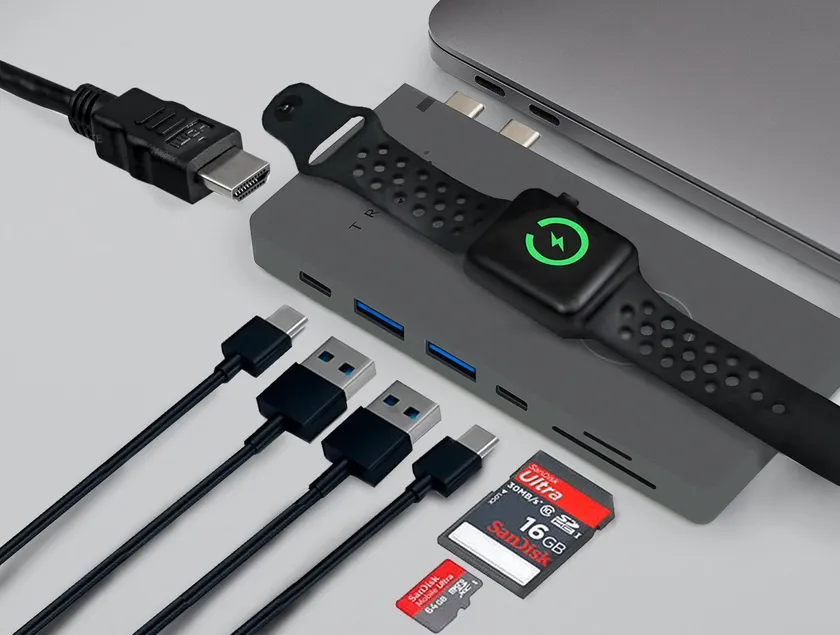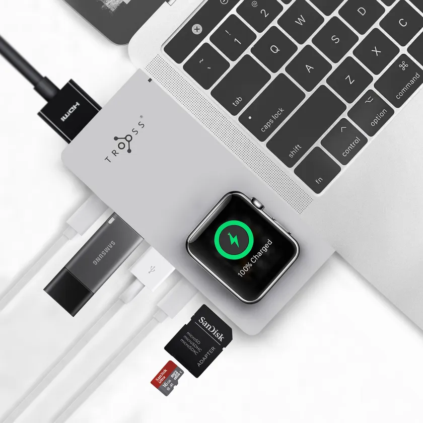 Troossはスマートフォン、Apple Watch、AirPodsなどのワイヤレス充電が可能なMacBook専用の8in1のUSB-Cハブです。