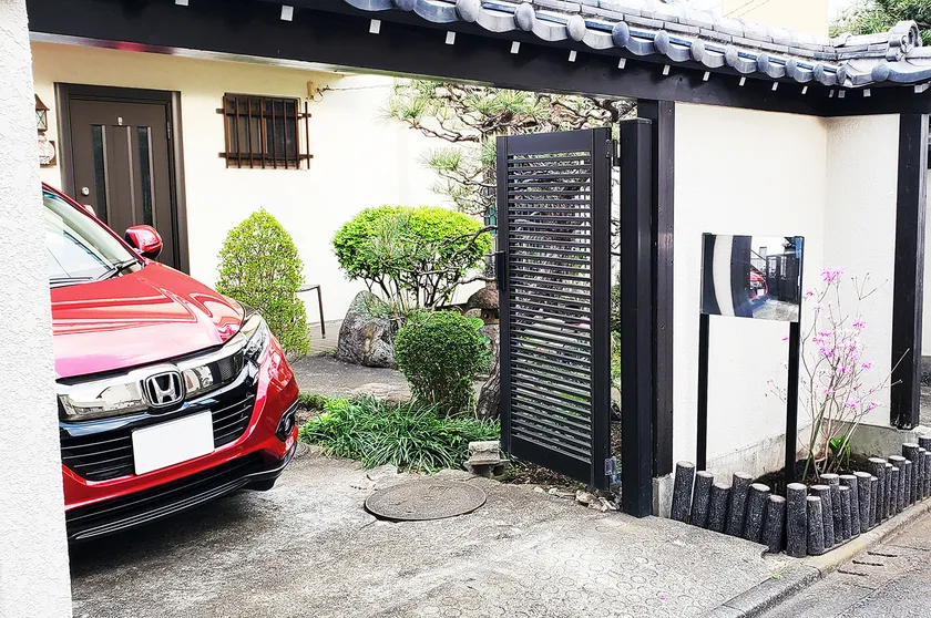 駐車場用FFミラーは出庫する際に、左右の安全確認・衝突防止に役立ってきました。ミラーを壁面に取り付けても出っ張らず、スッキリと設置できると好評です。