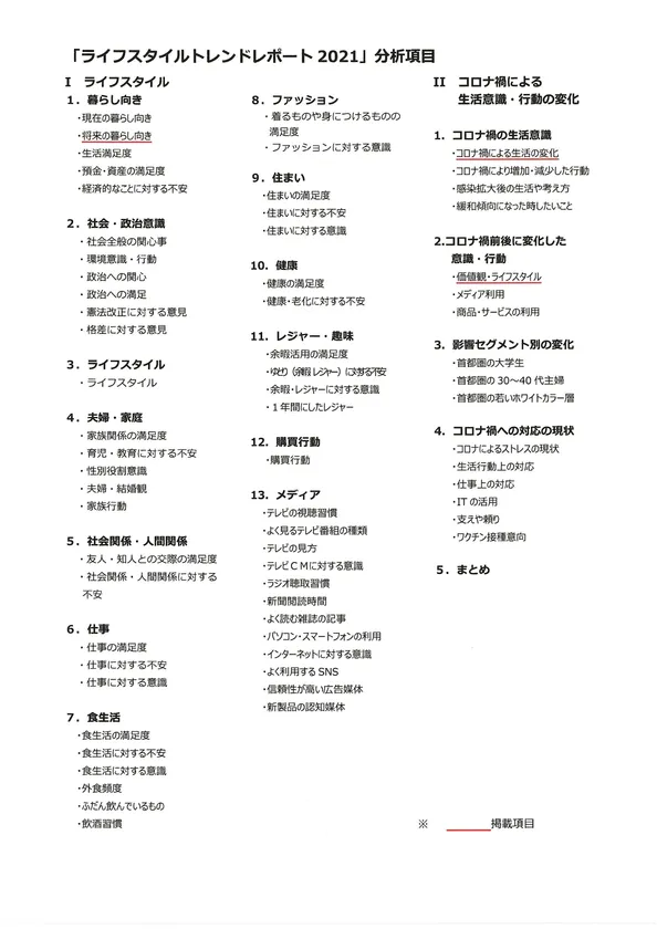 【「ライフスタイルトレンドレポート2021」分析項目】