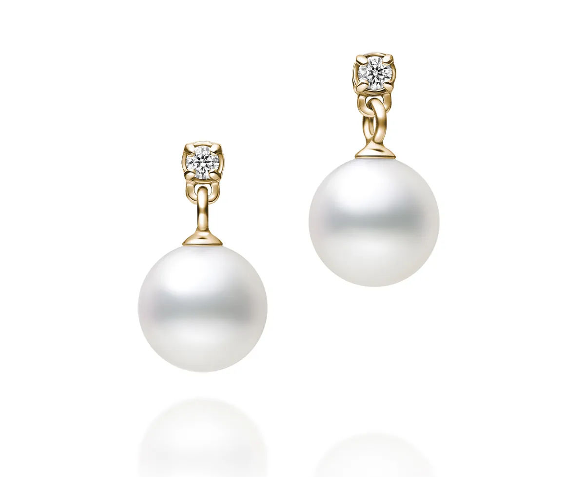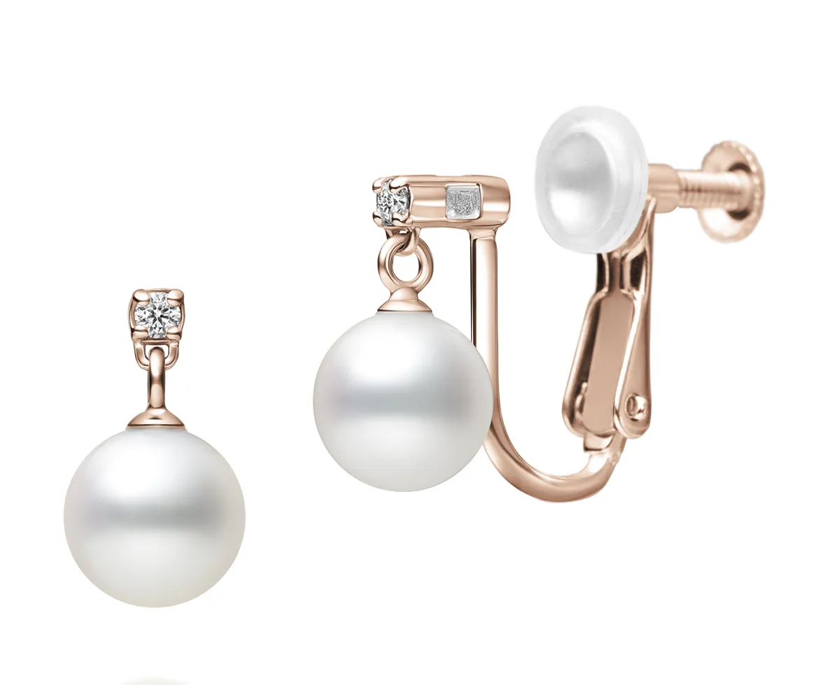上品な光沢感を放つ パールに、メレダイヤモンドの煌めきが映えるピアス。月の光のように、着ける人の表情を輝かせてくれます。