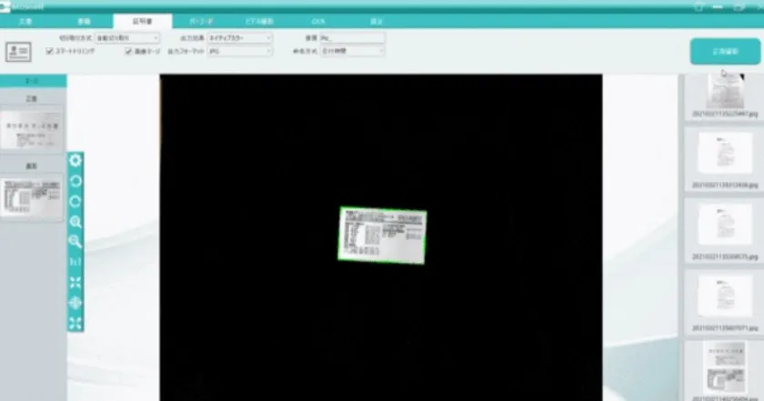 スキャン対象をカメラ枠内に収めると自動的に対象を捕捉。斜めに置かれたものでも位置を補正し、まっすぐに取り込み可能。