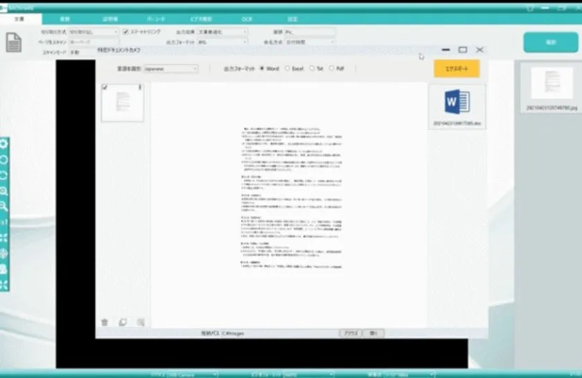 「GP1080A ポータブルスキャナー」はOCR(光学文字認識)機能を使用して、取り込んだ画像から文字を認識し、WordやExcel、PDFに出力する事が可能です。