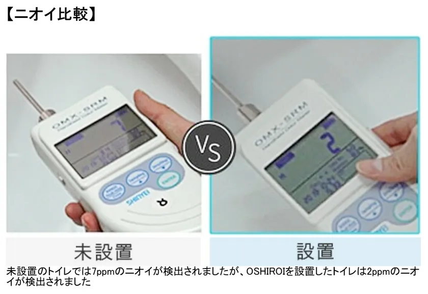 2.OSHIROIを設置したトイレと未設置のトイレを20日間使用後の比較をしました。