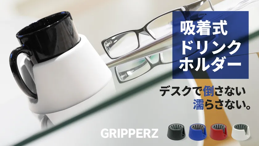 欧米発デスク用吸着式ドリンクホルダー「GRIPPERZ」 Makuakeにて5月21日に先行販売開始