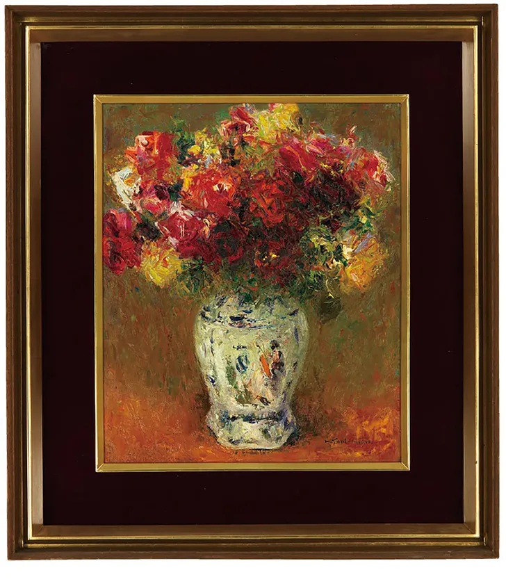 山本彪一は昭和洋画壇の雄との呼び声高く、フランス政府からパームコマンドール勲章を受章するなど、生前から高い評価を受けた画家です。鮮やかな色彩で描かれる油彩画が特徴です。今回はとくに人気の高い、ヨーロッパの街並みや、薔薇の花を描いた作品が多数出品されます。どうぞご期待ください。