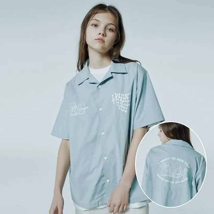 WaiKei Puppy dolphin open collar shirts SKYBLUE