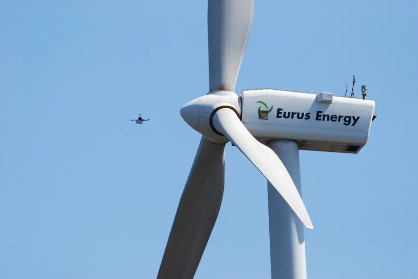 ユーラステクニカルサービスと東京電力ベンチャーズ、 国内最大規模の風力発電設備のドローン点検を実施