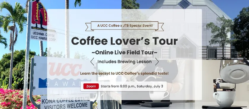UCCグループのコーヒーの総合的な教育機関「UCCコーヒーアカデミー」は、大手旅行会社の株式会社JTB(本社/東京都品川区、代表取締役 社長執行役員/山北栄二郎、以下/JTB)と、業界最大級の海外向け商品代理購入サービス「Buyee(バイイー)」を運営するBEENOSグループのBeeCruise株式会社(本社/東京都品川区、代表取締役社長/直井聖太、以下/BeeCruise)と協働して、アジア地域のお客様を対象に、コーヒーのおいしさとその秘密を探るオンラインツアー「Coffee Lover's Tour」を7月3日(土)からスタートします。