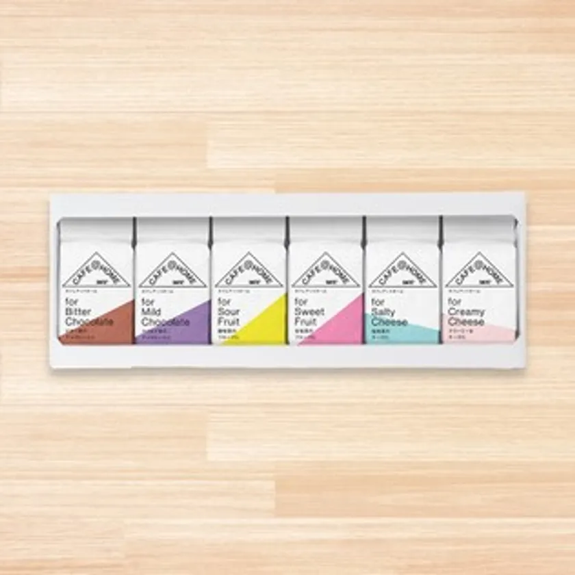 コーヒーの産地や品種ではなく、チョコレート、チーズやフルーツなどの食べ物とコーヒーのマッチングを提案する「CAFE@HOME」シリーズのギフトセットです。
