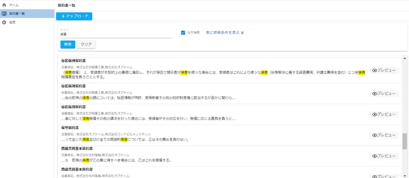 クラウドで一元管理したセキュアなデータベースを検索し、すぐに目的の契約書へアクセス可能