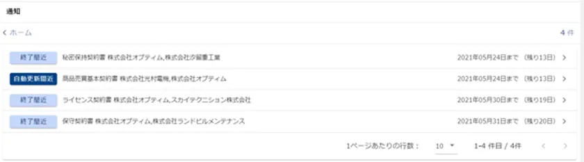 契約の更新期日が近づくと自動で通知、更新漏れを防止